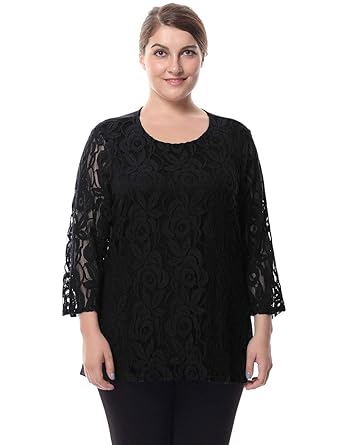 Chicwe Femme Grande Taille Doublé Dentelle Top Blouse Col Rond