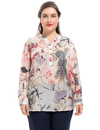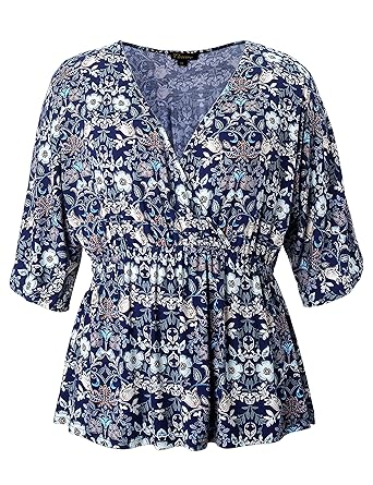 Chicwe Femme Grande Taille Floral Imprimé Top Chemisier Avec Cou