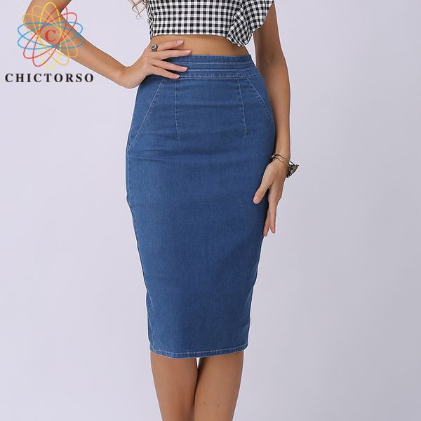 Acheter Chictorso Sexy Taille Haute Denim Jupes Bleu Moulante Crayon