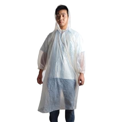 Femme Homme Adulte Clear White Jetable Imperméable à Capuche Poncho
