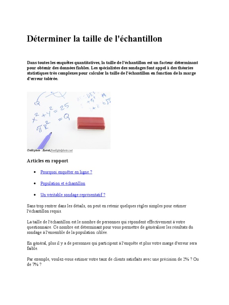 Taille D Un échantillon Aléatoire Et Marge D Erreur Pdf