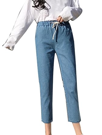 Zhhlinyuan Rétro Boyfriend Style Lavé Denim Pantalon Minceur Jeans