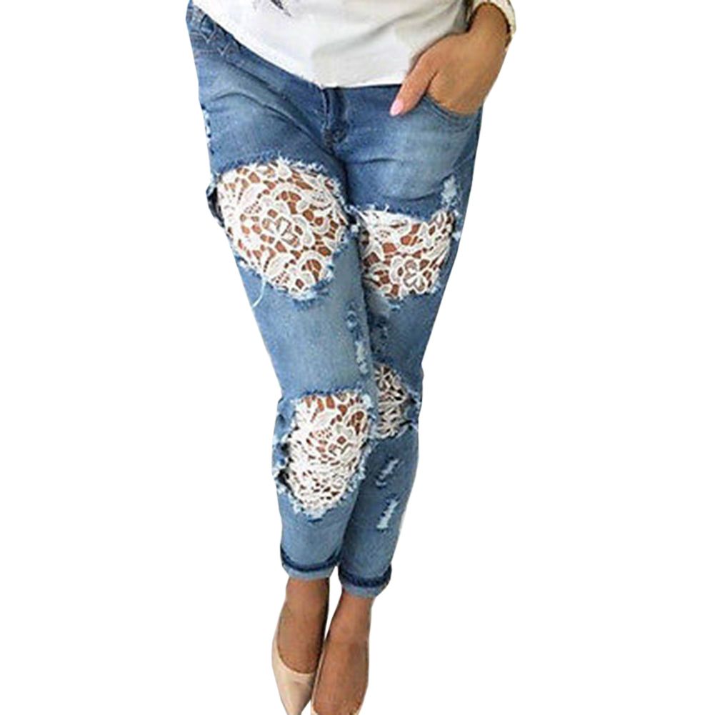 Acheter 2018 Pas Cher Jeans Taille Plus Dentelle épissée Basse