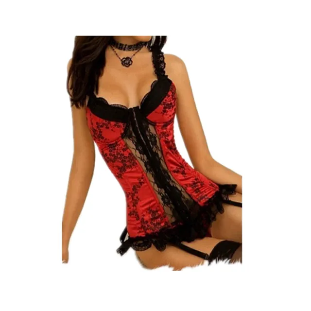 Yummy Bee Porte Jarretelles En Dentelle Noir Rouge String Lingerie