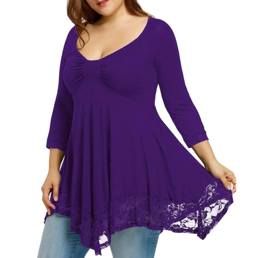 Kangrunmy 2018 Femme Chic Dentelle Chemisier Grande Taille Couleur