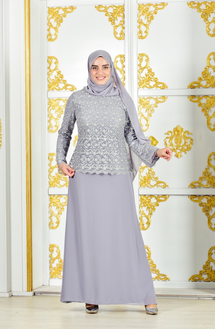 Robe De Soirée A Dentelle Grande Taille 4006 01 Gris 4006 01