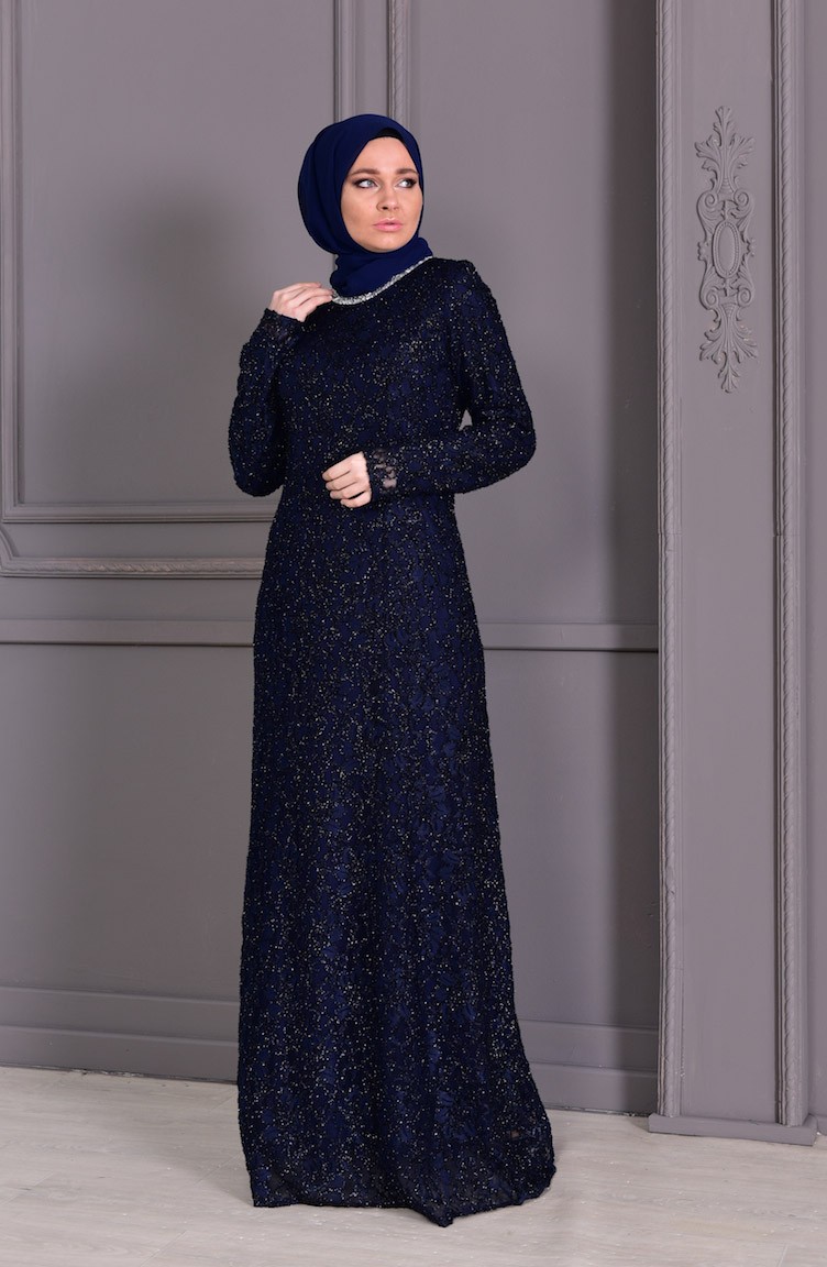Robe De Soirée A Dentelle Grande Taille 2054 01 Bleu Marine 2054 01