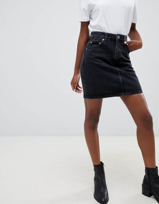 Asos Curve Mini Jupe En Jean Noir Délavé Denim Non Stretch Fini