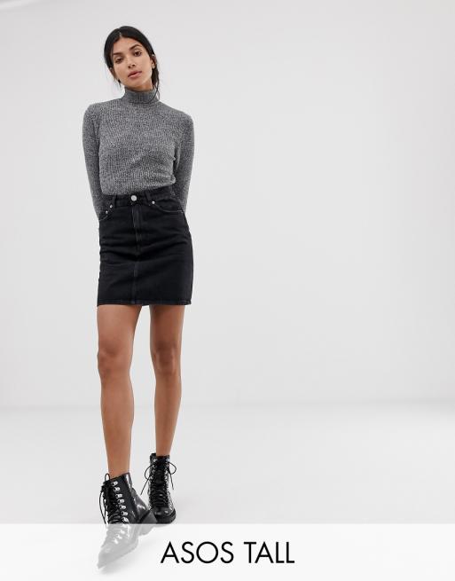 Asos Design Tall Jupe Taille Haute Originale En Jean Noir Délavé