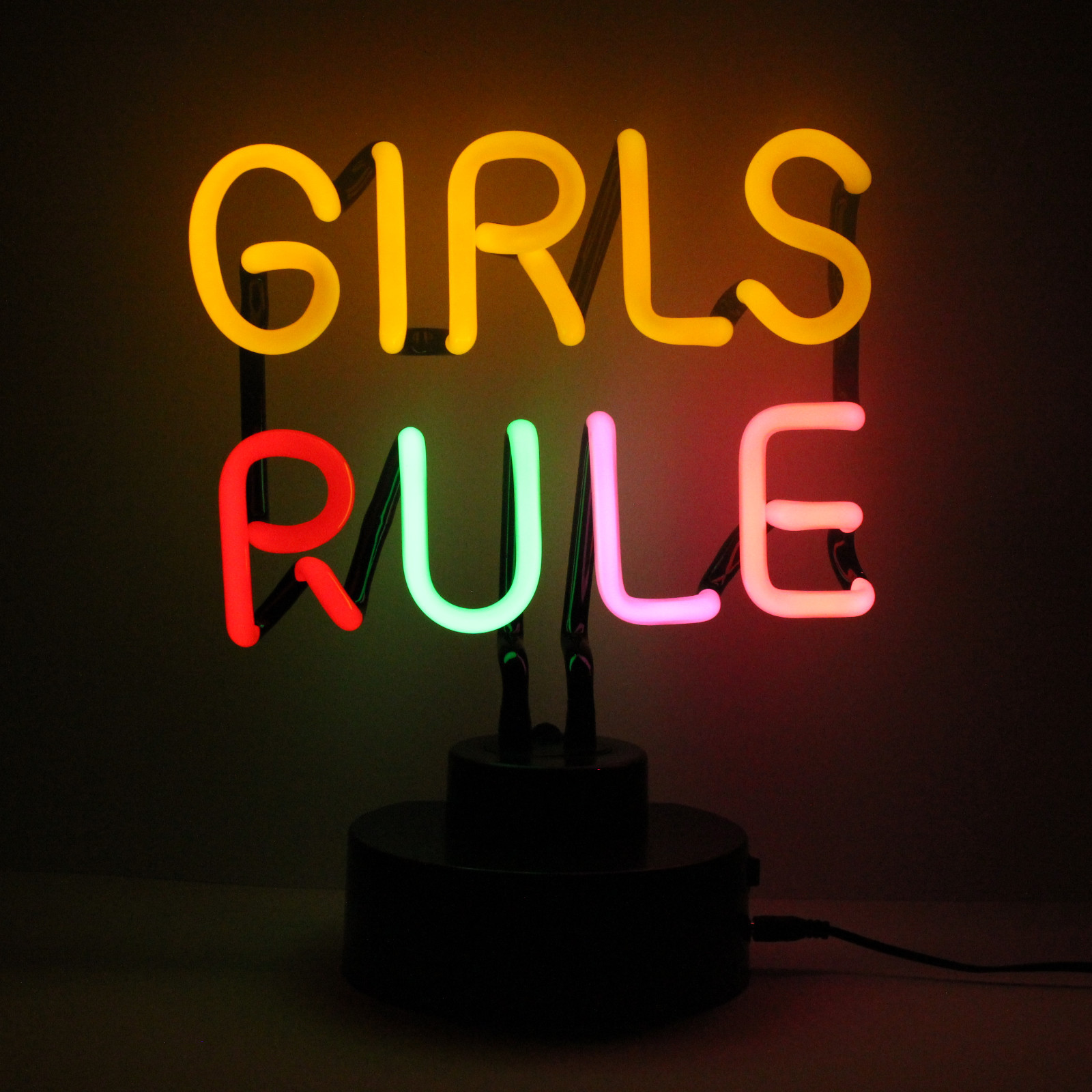 Néon Filles Rule Lumière Sculpture Détail Point De Vente Signe Teen