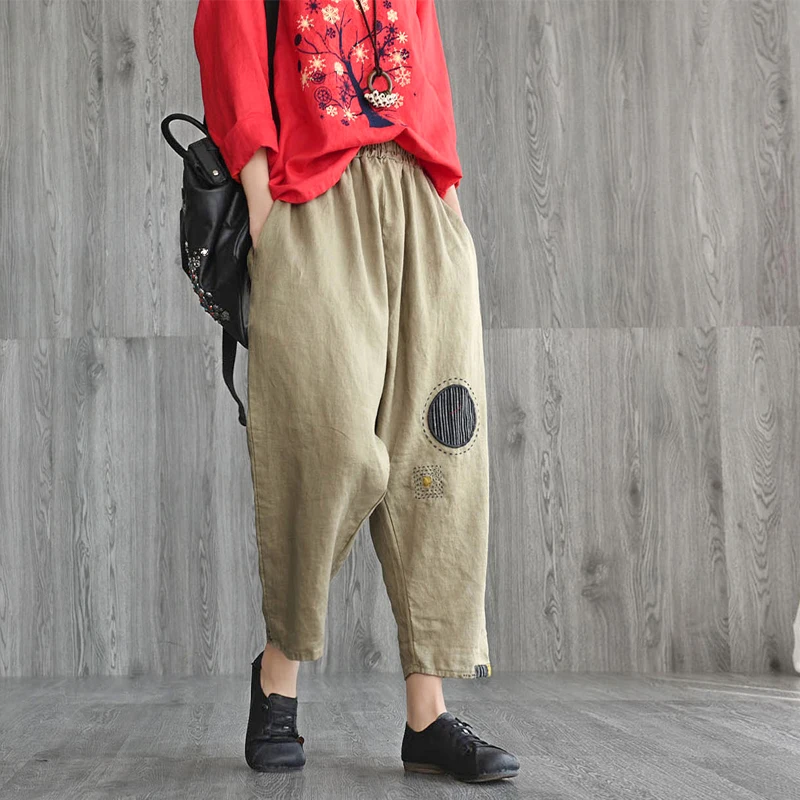 Décontracté De Nouveau Poche Large Dames Rétro Patchwork Taille
