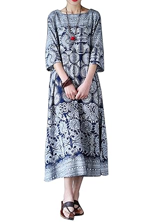 Femmes S 5xl Décontracté Boho Bohême Lin Robe Longue Plage Caftan