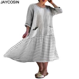 Femme Printemps Impression Grande Taille Robe Baggy Lin Robe Chic