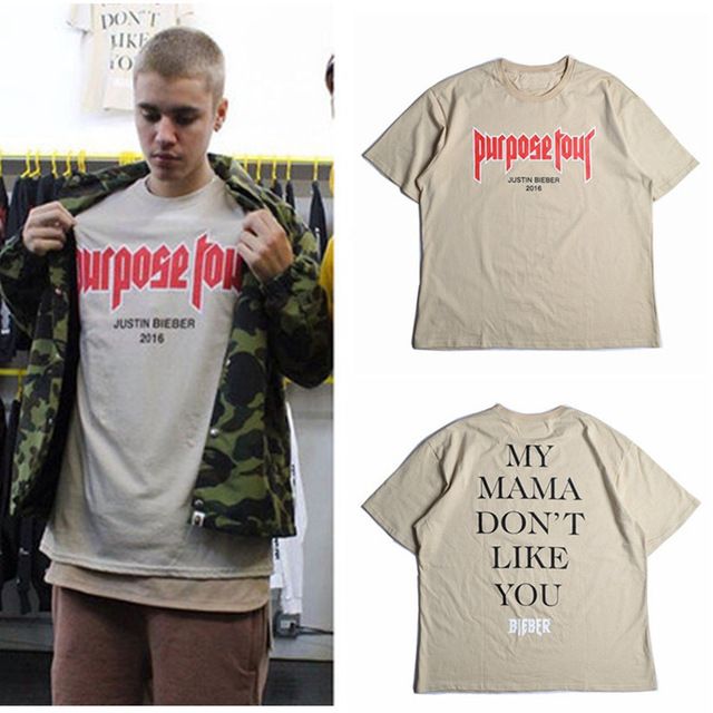 Acheter Mode T Shirt Justin Bieber Lettre Imprimé Hommes Haute Rue T