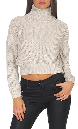 Malito Femme Pull En Tricot Col Roulé Haut Sweat Shirt 7327 Beige