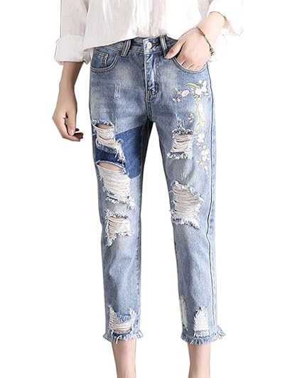 Guiran Femme Denim Jeans Déchirés Troué Pantalons Boyfriend Coupe