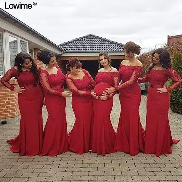 Robes De Demoiselle Dhonneur En Dentelle Rouge De Grande Taille